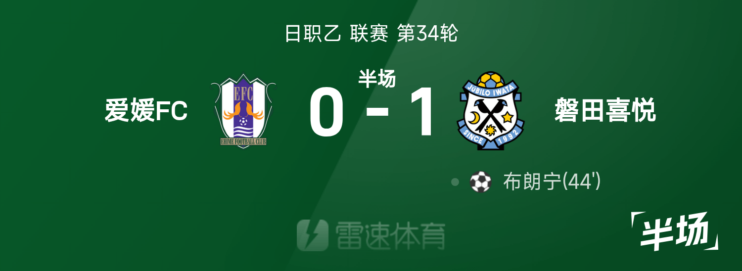 日職乙半場:布朗寧破門,愛媛0-1磐田喜悅