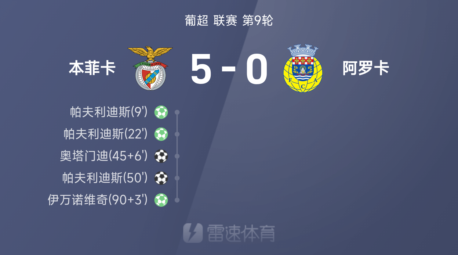 葡超戰報:帕夫利迪斯帽子戲法,本菲卡5-0狂勝阿羅卡