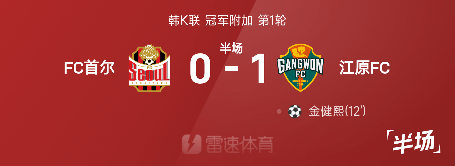 韓K聯半場:金健熙掃射破門,江原暫時1-0首爾