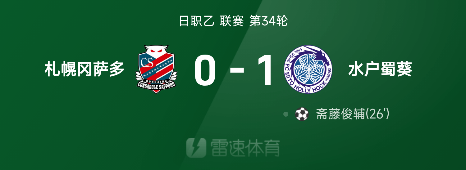 日職乙戰報:齋藤俊輔制勝,札幌岡薩多0-1水戶蜀葵