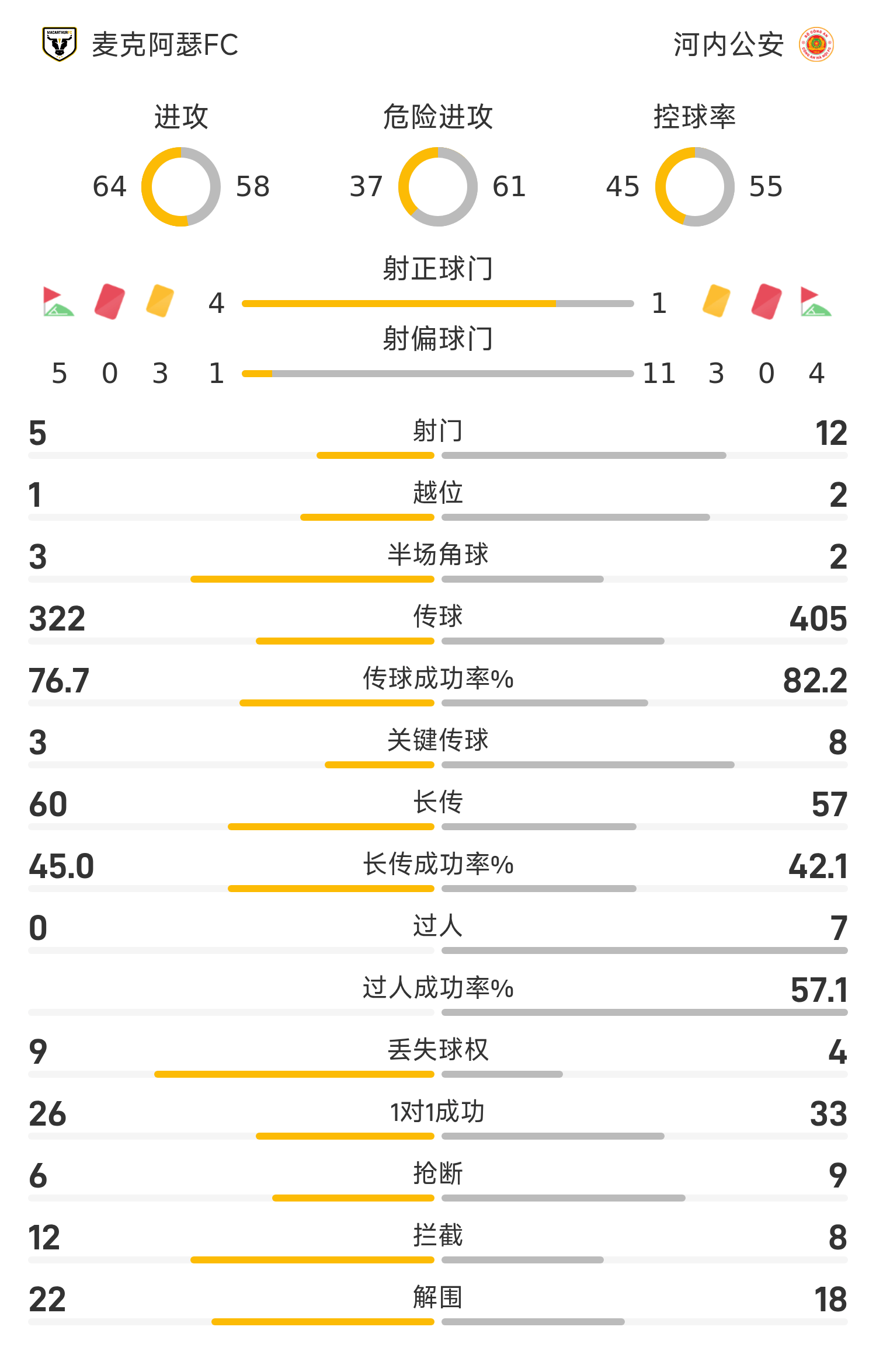 45’希納前場斷球形成單刀,守門員奮力救球拯救球隊