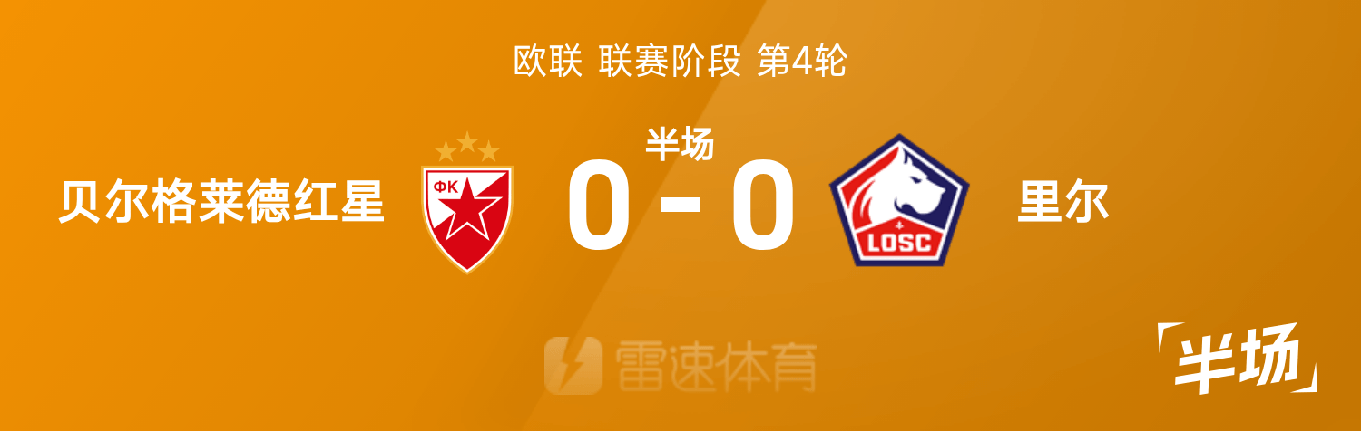 歐聯半場:場上僵局暫未打破,貝爾格萊德紅星0-0裡爾