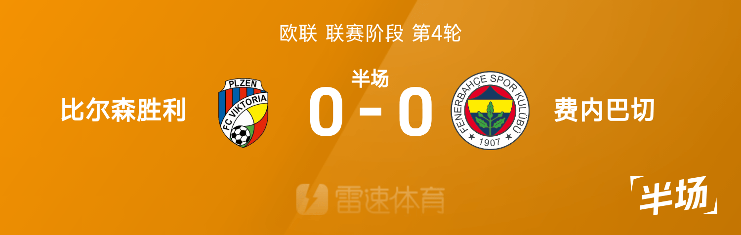 歐聯半場:場上僵局暫未打破,比爾森勝出0-0費內巴切