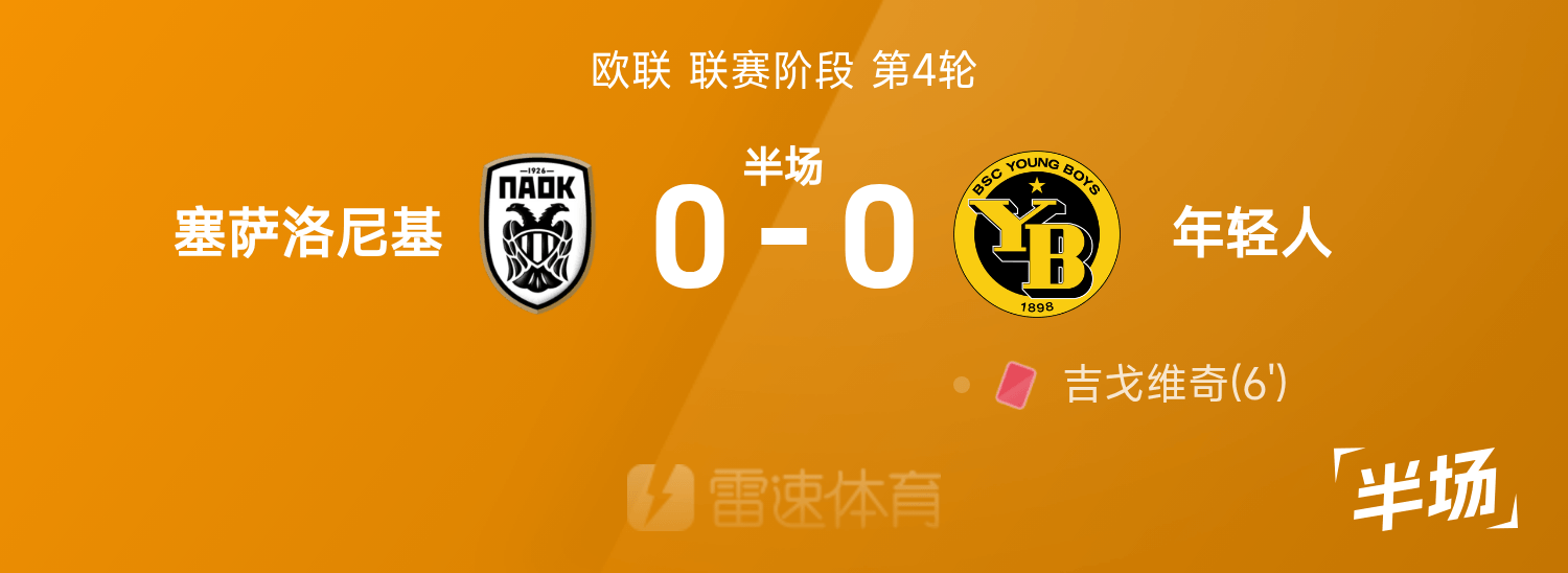 歐聯半場:吉戈維奇染紅,塞薩洛尼基0-0年少人