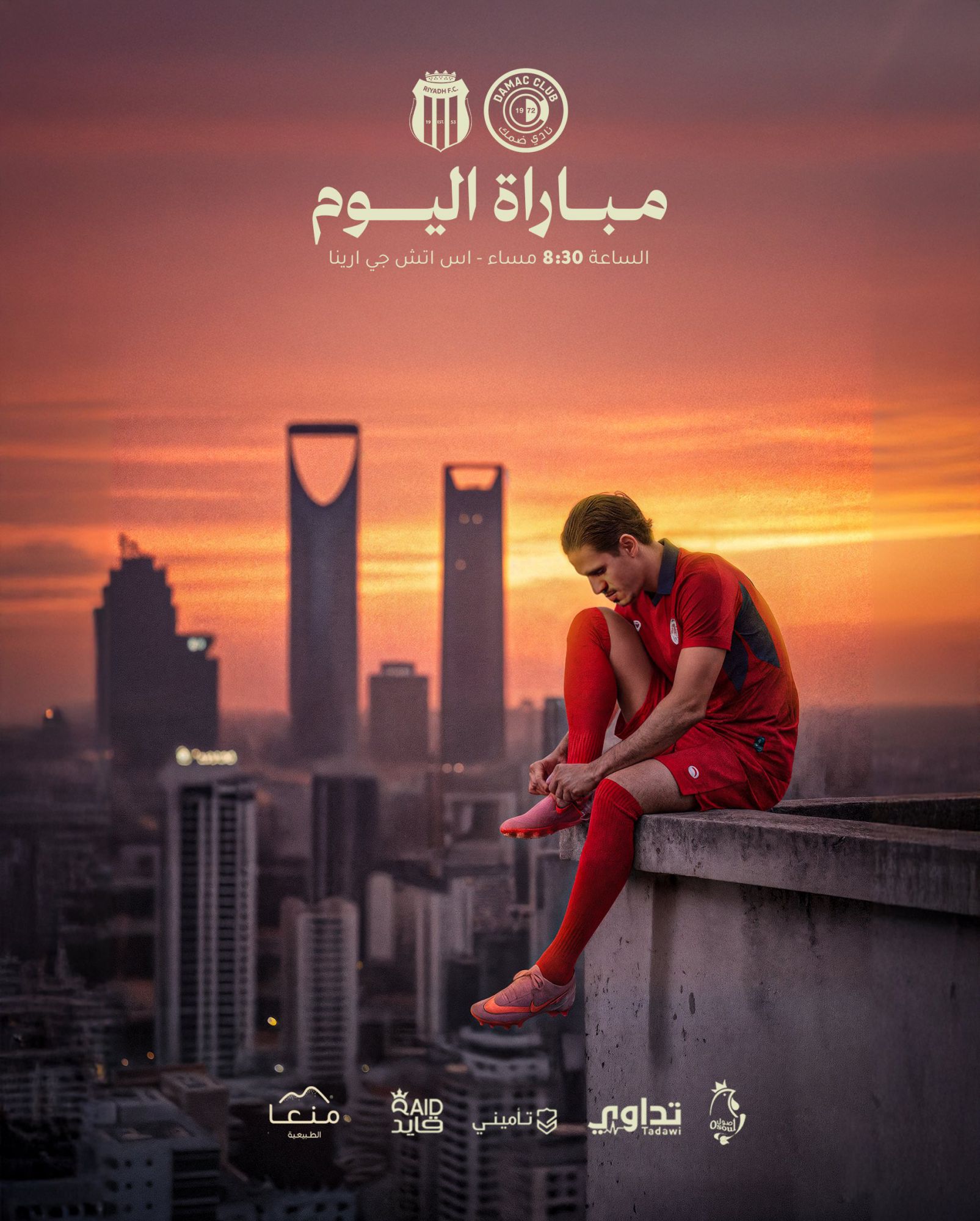 海報顯示,達馬克球員穿著隊服坐在樓頂邊緣繫鞋帶。