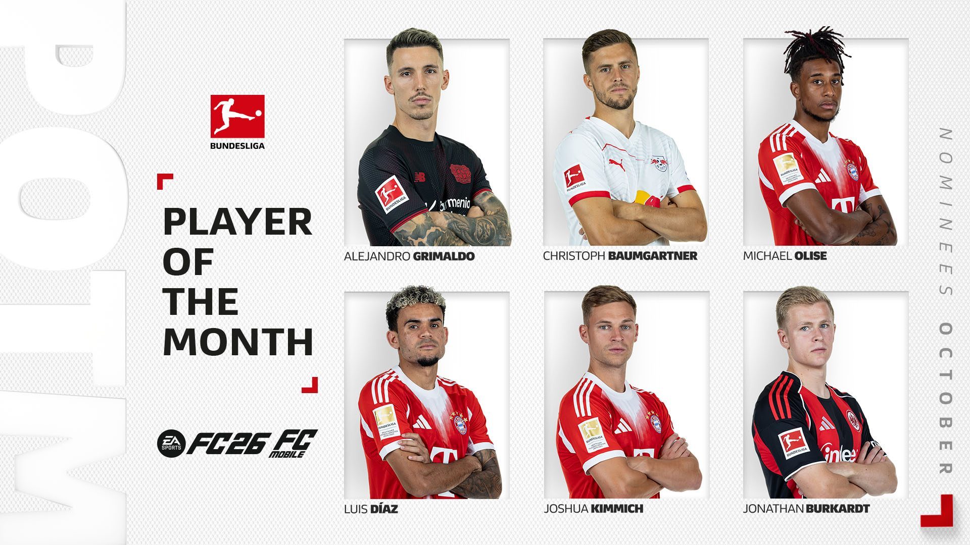 6686體育11月7日訊 德甲官方公佈了十月份聯賽事最佳球員,法蘭克福伯克特力壓拜仁拜仁迪亞斯和藥廠前鋒格里馬爾多當。