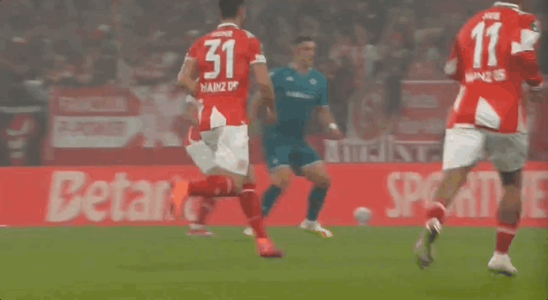 美因茨首發陣容:27-澤特納、21-達科斯塔、31-科爾、48-波圖爾斯基、2-姆韋恩(46’30-威德默)、10-阿米里(81’14-博文)、15-馬隆尼(596-阿米)、8-內貝爾(65’17-霍勒巴赫)、11-西卜(60’7-李在成)、24-川崎颯太、44-維皮爾