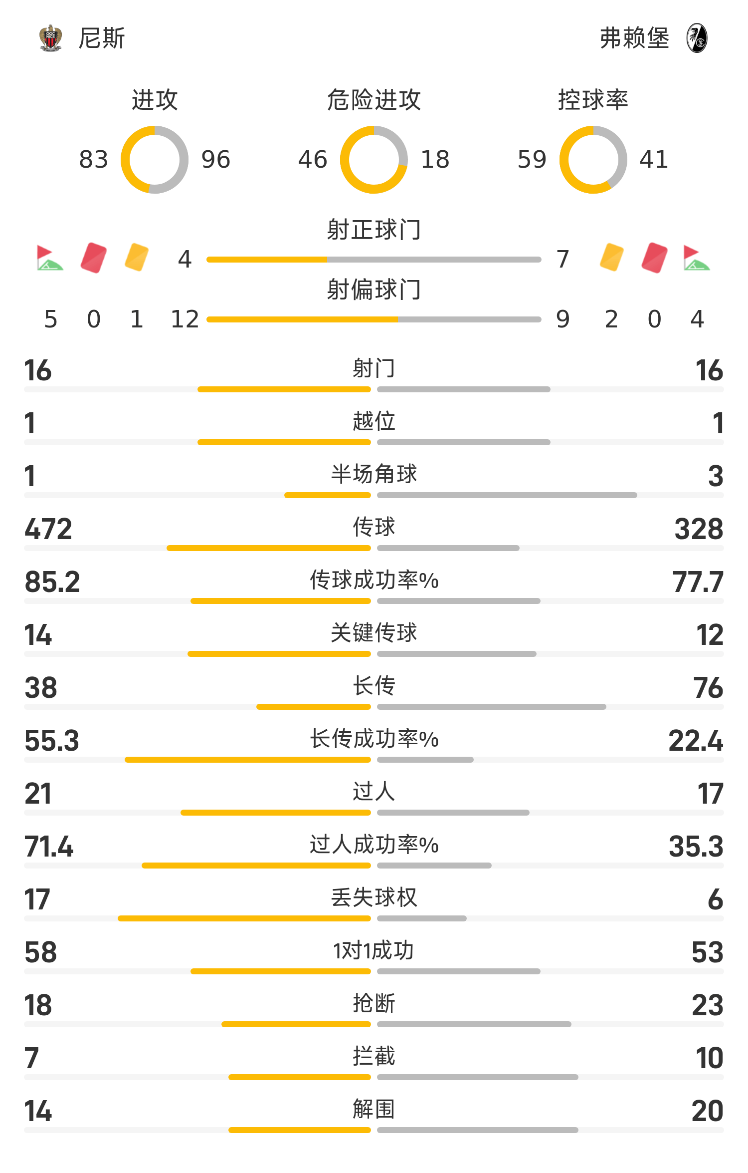 尼斯先發陣容:80-迪烏夫、26-巴德、33-門迪、28-巴、2-阿卜迪(46’25-喬)、10-迪奧普、24-範霍特(69-6-布杜維)、47-6-196-布西維’ 9-薩梅德(69’8-桑松)、7-博加、90-卡洛斯(77’21-揚松)