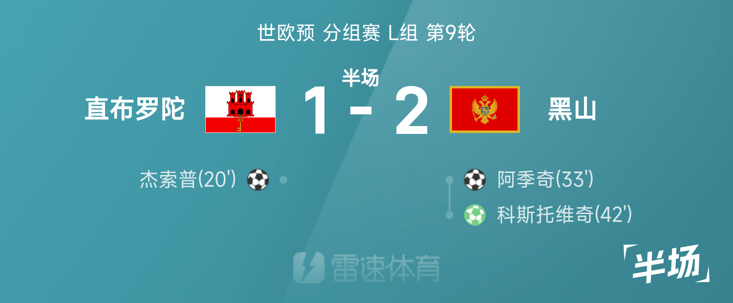 世歐預半場:傑索普建功,阿季奇破門,黑山2-1直布羅陀