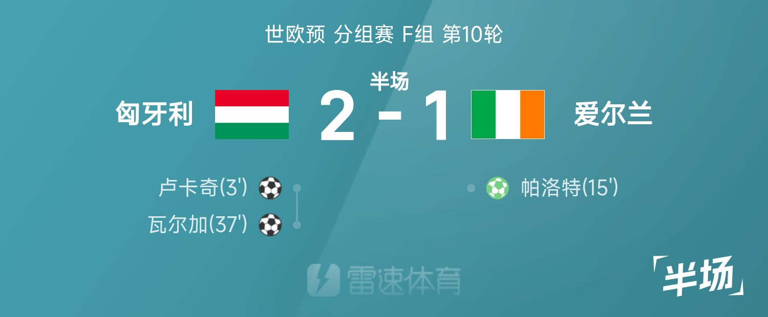 世歐預半場:瓦爾加凌空世界波,匈牙利暫2-1愛爾蘭