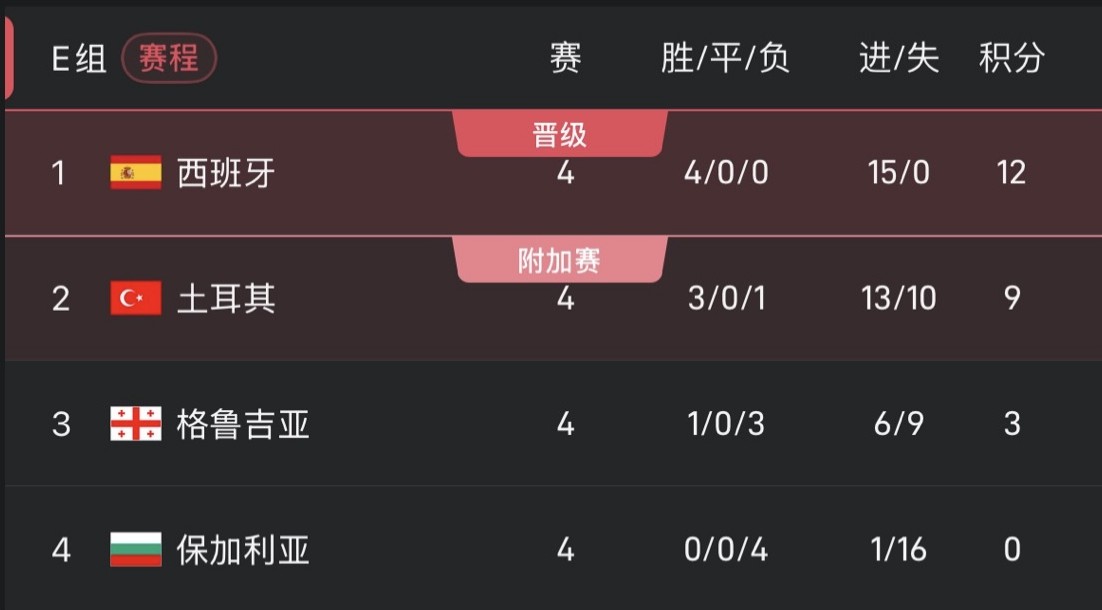 西班牙若戰勝格魯吉亞,且土耳其未能擊敗保加利亞,便可提前出線。否則,小組頭名很可能在最後一輪西班牙與土耳其的直接對話中決定。