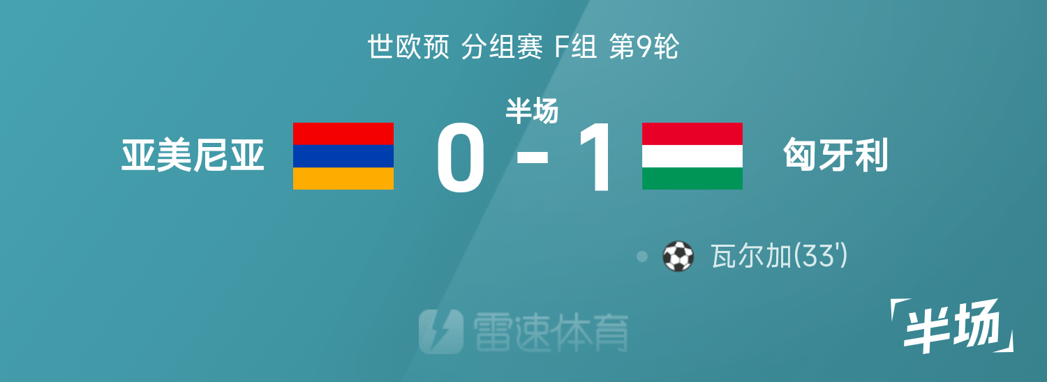 世歐預半場:瓦爾加破門,亞美尼亞0-1匈牙利