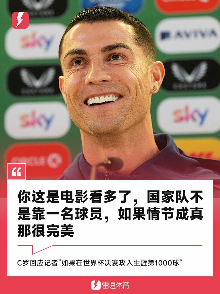 談到明天的競賽,C羅說:「這將是一場非常艱難的競賽,這將是非常艱難和體力耗費的。 他們需要贏球。道如果能在世盃賽總決賽打入自己職業生涯的1000球,C羅直接說道:「你這是電影看多了。國家隊不是靠一名球員,當然進球永遠讓我愉悅。我期望能參加下一屆世杯賽,如果你說的電影情節能變成現實,那也很完美了。」