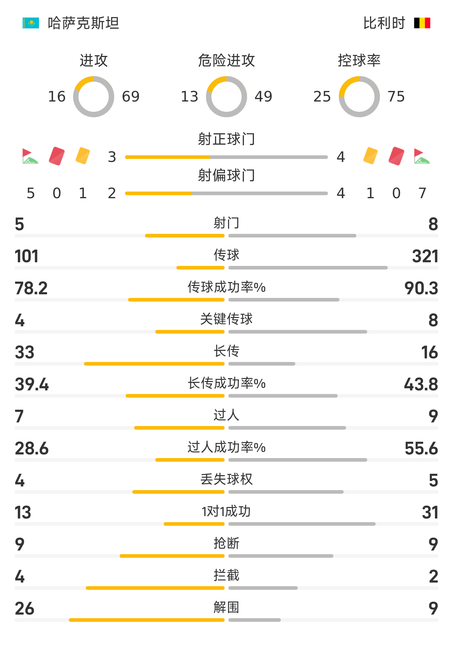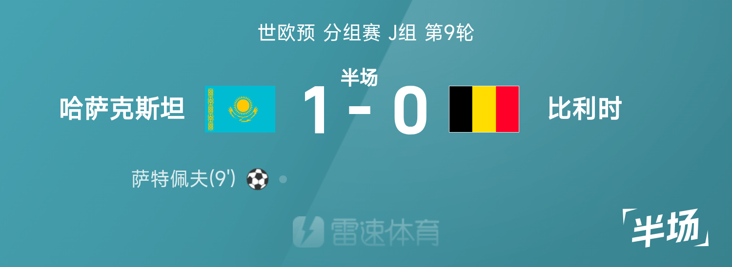 世歐預半場:薩特佩夫建功,哈薩克暫1-0比利時