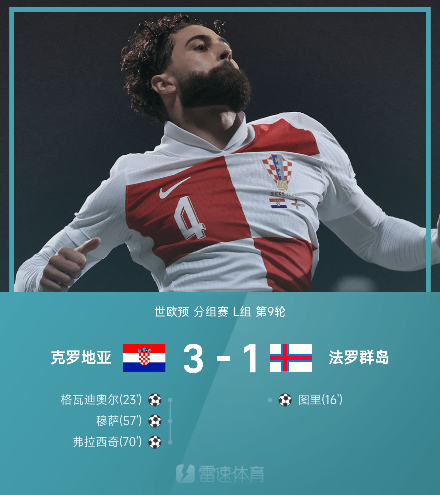世歐預戰報:格瓦迪奧爾破門,克羅埃西亞3-1法羅群島晉級世盃賽