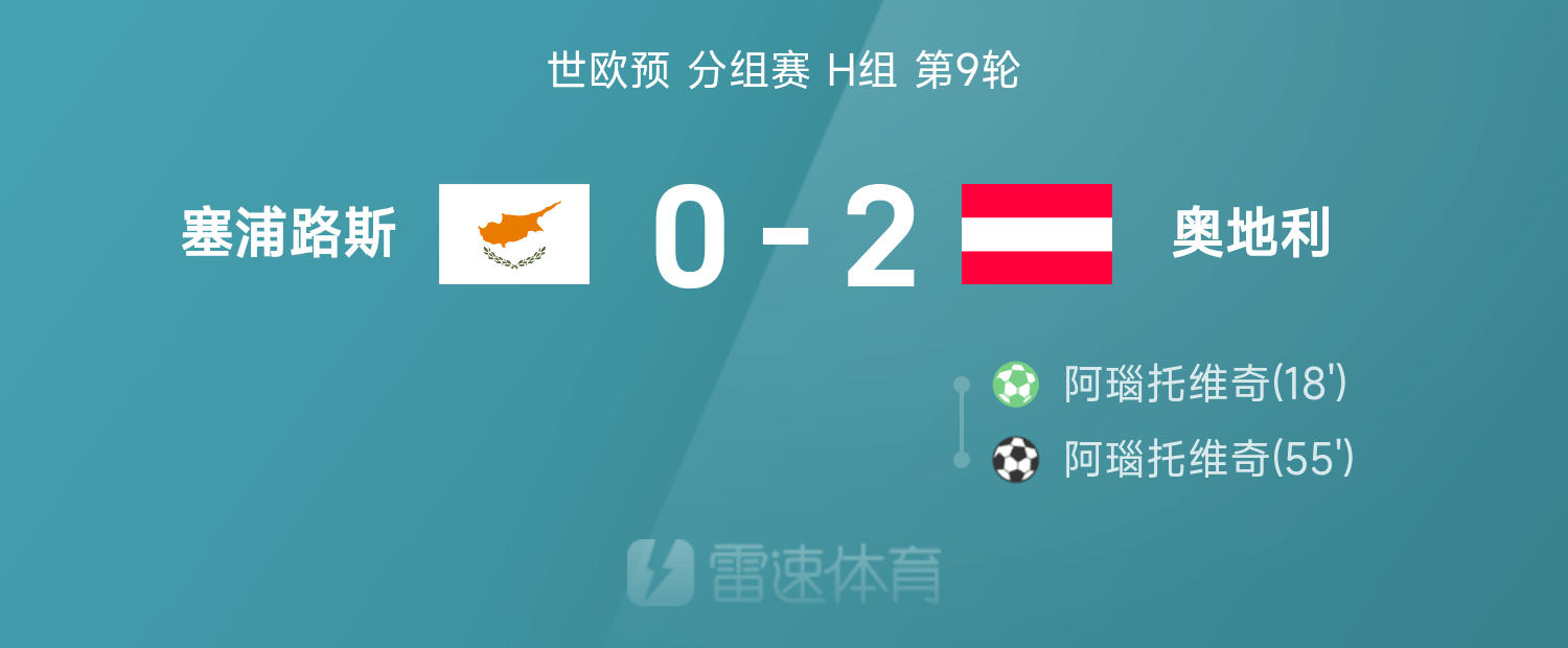 世歐預報報:阿瑙托維奇梅開二度,奧地利2-0塞浦路斯