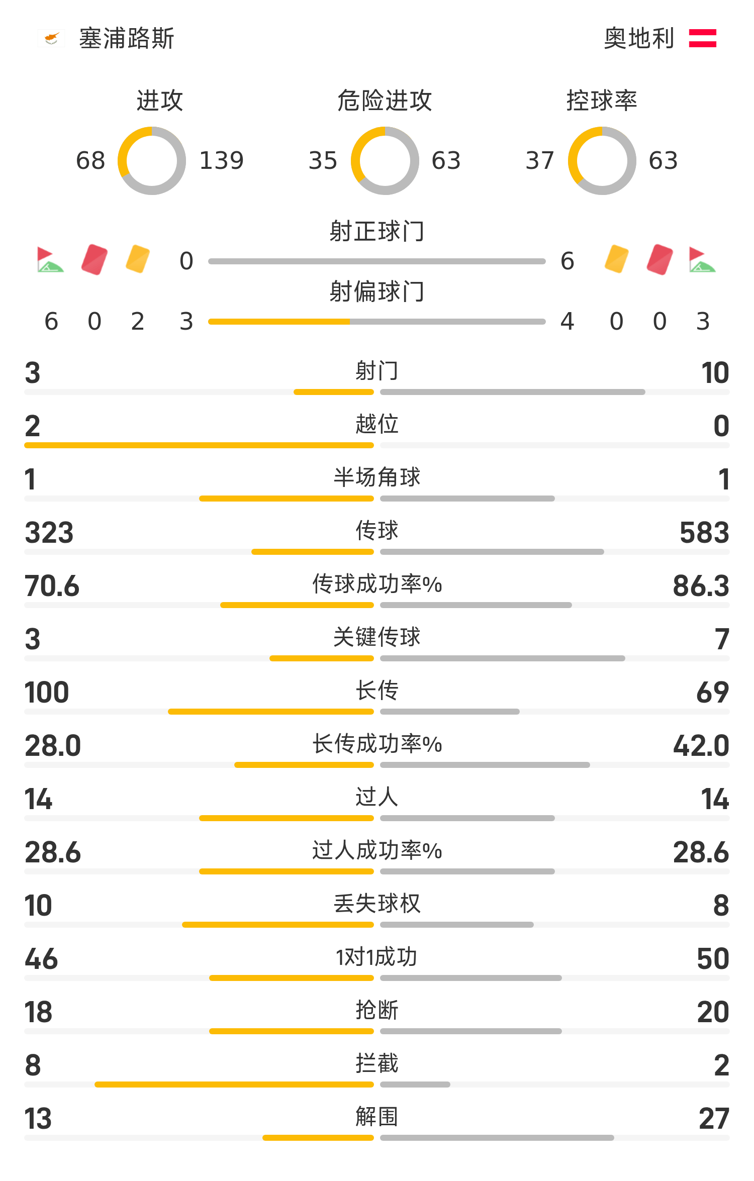 塞浦路斯首發陣容:12-法比亞諾、7-科雷亞(65’13-科斯蒂)、15-謝爾斯、3-帕納吉奧圖、2-希基斯、8-庫蘇洛斯、20-卡斯塔諾斯(65’16-安德烈斯福尼思(81-81-81-819(65’蒂)、5-查拉蘭波斯(82’9-庫薩科斯)、17-洛祖(65’11-卡庫利斯)、10-索特里烏