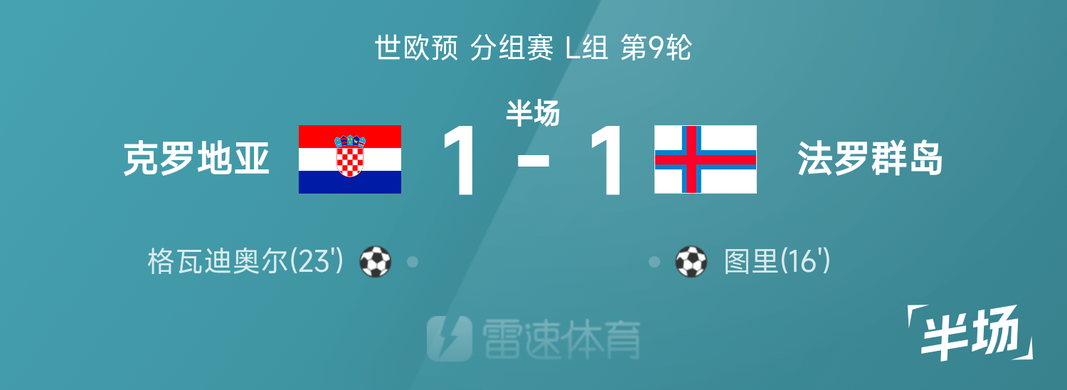 世歐預半場:圖裡破門,格瓦迪奧爾扳平,克羅埃西亞1-1法羅群島