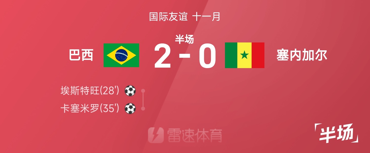 國際友誼半場:埃斯特旺、卡塞米羅破門,巴西2-0塞內加爾