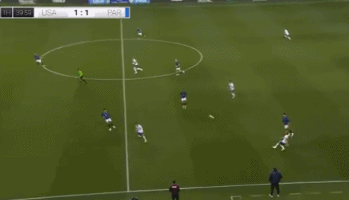 18’有點正!美國隊獲得絕佳機會,但最後的打門太正被吉爾撲下