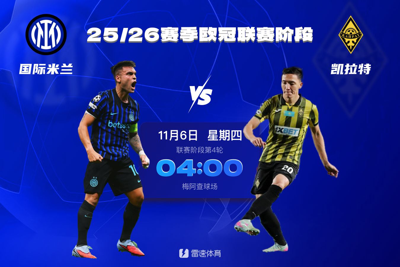 6686體育11月5日訊 北京時間6日凌晨4時,歐冠聯賽事階段第四輪,國際米蘭將坐鎮主隊對上凱拉特。