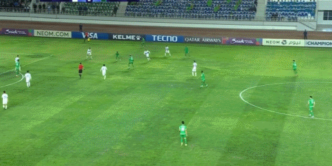 78’阿塔耶夫近距離傳接找弧頂隊友,皮球直接傳出了遠端側邊邊線