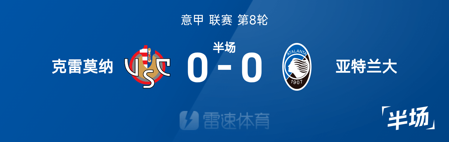 意甲半場:德凱特拉雷造險,克雷莫納0-0亞特蘭大