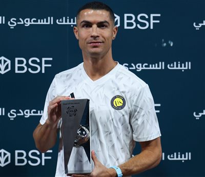 左路內切世界波!羅納多賽前領取沙烏地阿拉伯聯週最佳進球得主獎盃