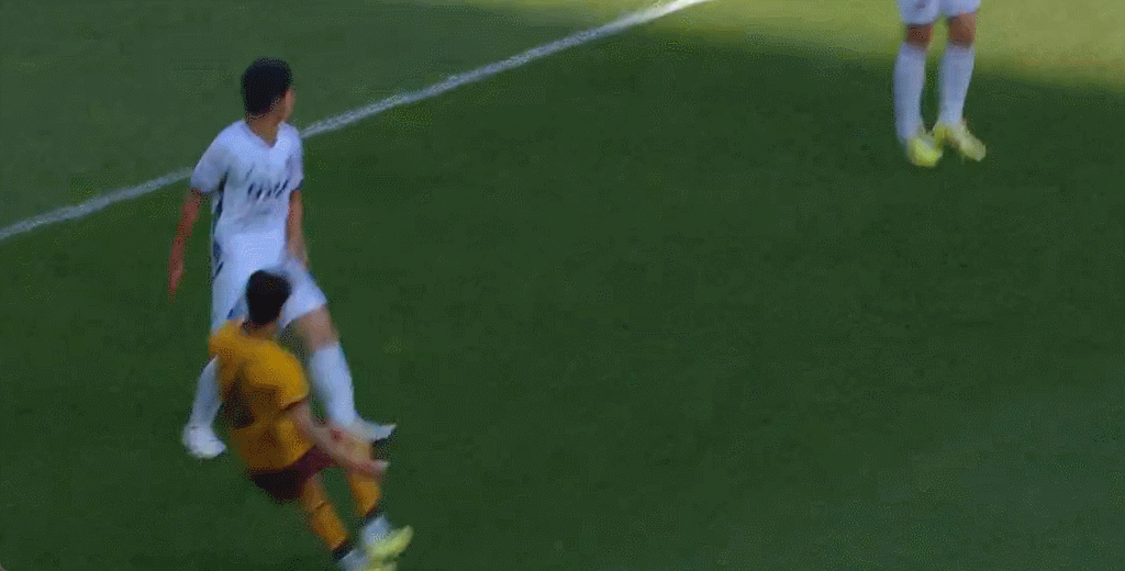 45’李昌龍門前擋射門雷斯打門,球稍稍偏出立柱險自擺烏龍