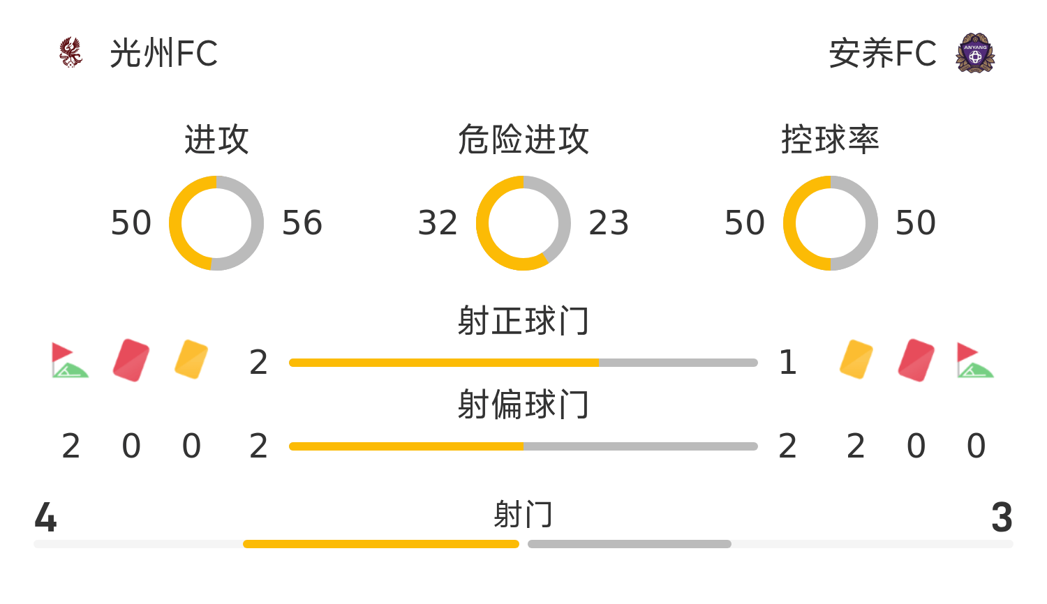 光州FC先發陣容:1-金耿民、94-沈相旼、5-卞俊洙、2-趙誠權、20-進時宇、10-崔慶綠、18-樸仁赫、 8-李剛瑩、16-鄭支訓、17-雷斯、40-申昶武