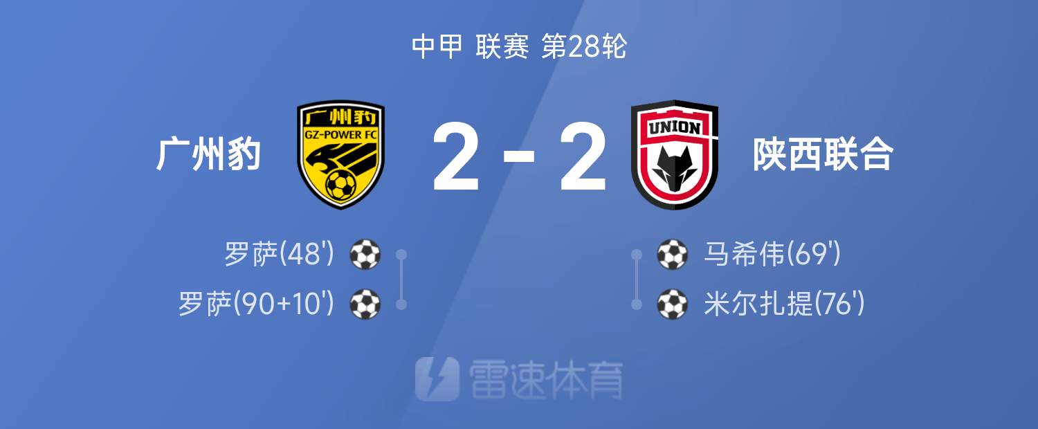中甲戰報:羅薩梅開二度+絕平,廣州豹2-2戰平陝西聯合