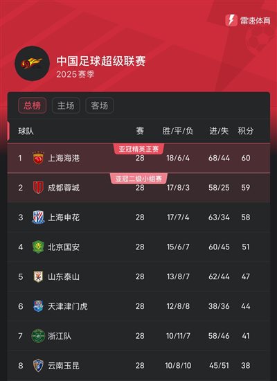中超爭冠情勢:還剩2輪海港蓉城申花僅差2分,國安徹底掉隊