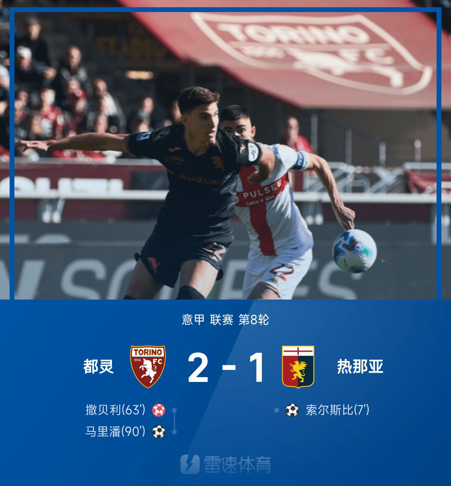 意甲戰報:撒貝利送烏龍,馬裡潘最後一投,都靈2-1逆轉熱那亞