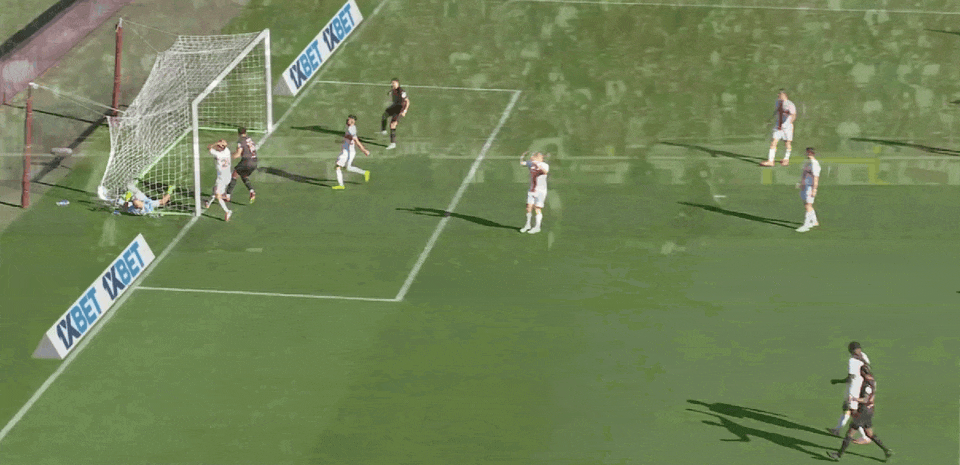 熱那亞先發陣容:1-萊亞利、20-撒貝利(78’70-科內)、5-厄斯蒂加德、22-巴斯克斯、17-馬利諾夫斯基(87’29-科倫坡)、2-索爾斯比(87’9-維蒂尼亞)、32-弗倫德魯普(78’14-奧納納)、77-埃勒特森、73-馬西尼、15-諾頓-庫菲、21-埃卡托(61’18-埃庫班)