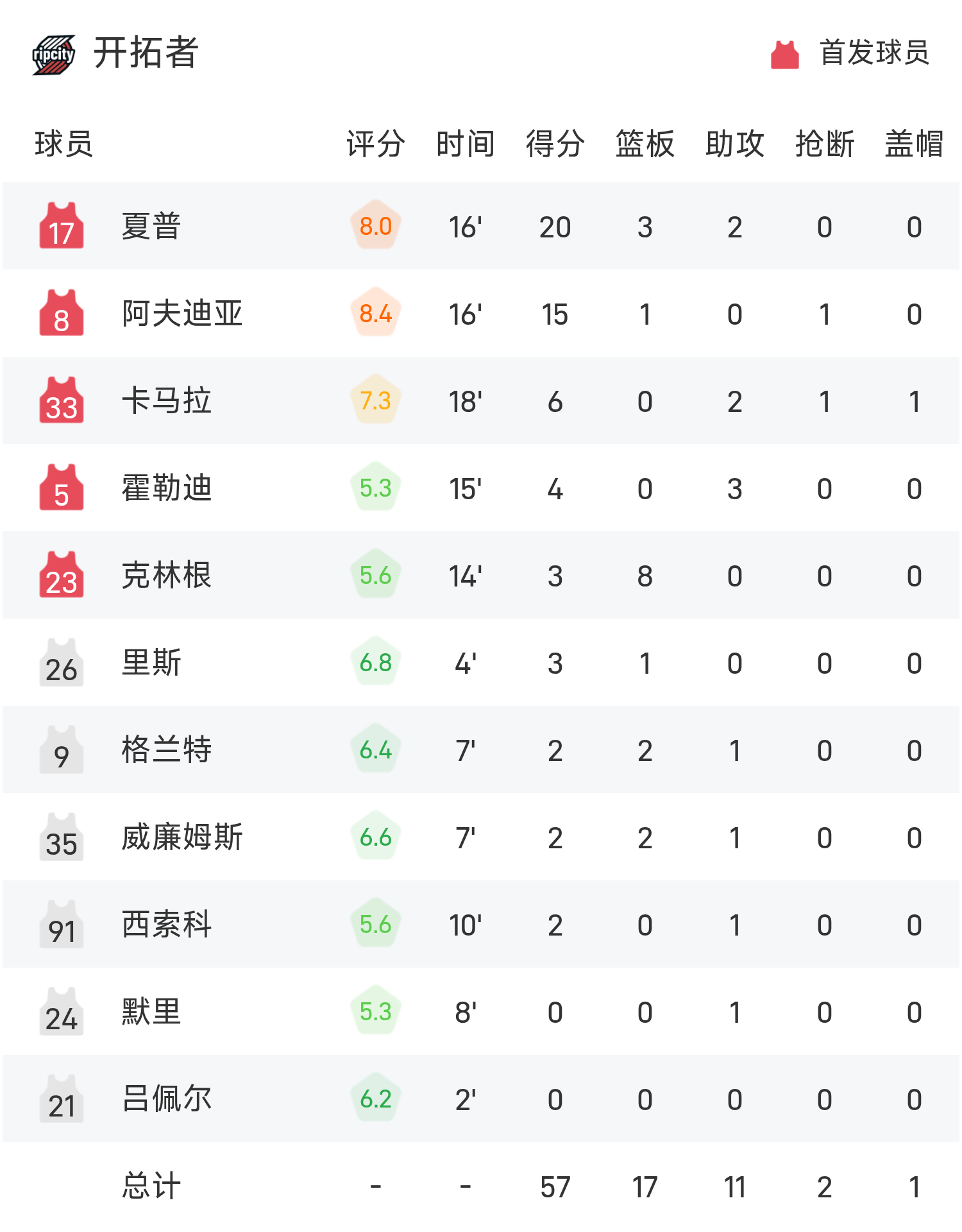 NBA半場:奎因16+6,楊瀚森暫未登場,拓荒者57-59鵜鶘
