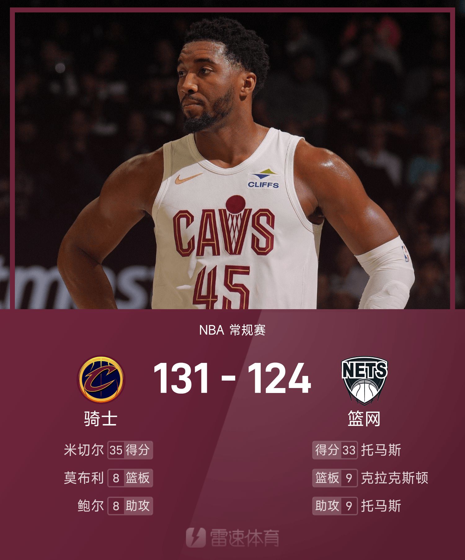 NBA戰報:米切爾35分,騎士131-124擊敗籃網