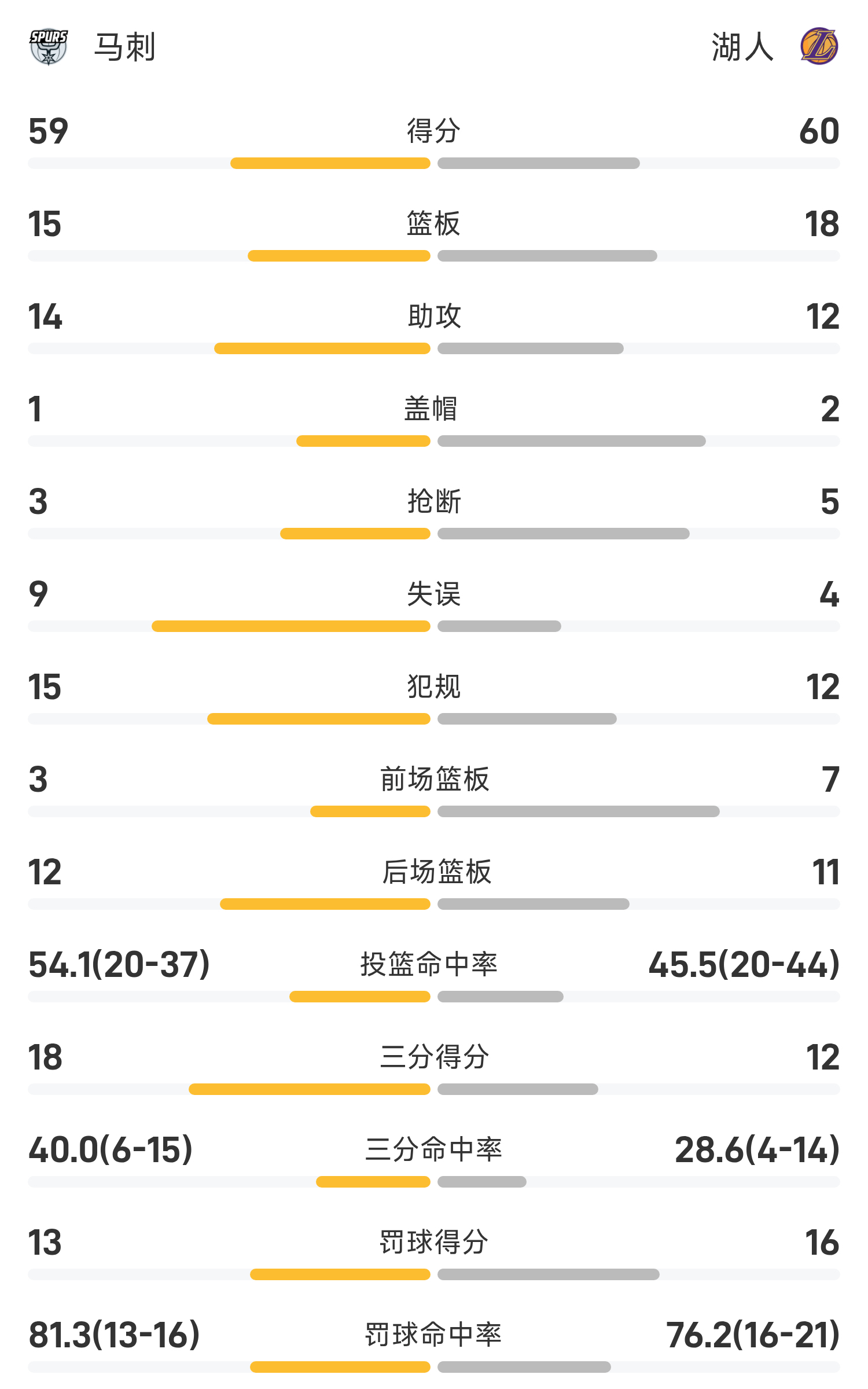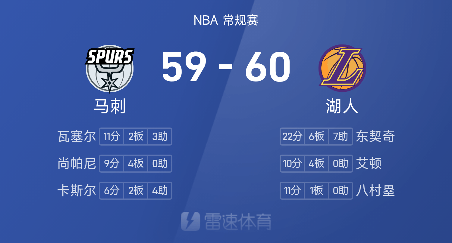 NBA半場:東契奇22分6板7助,湖人60-59馬刺