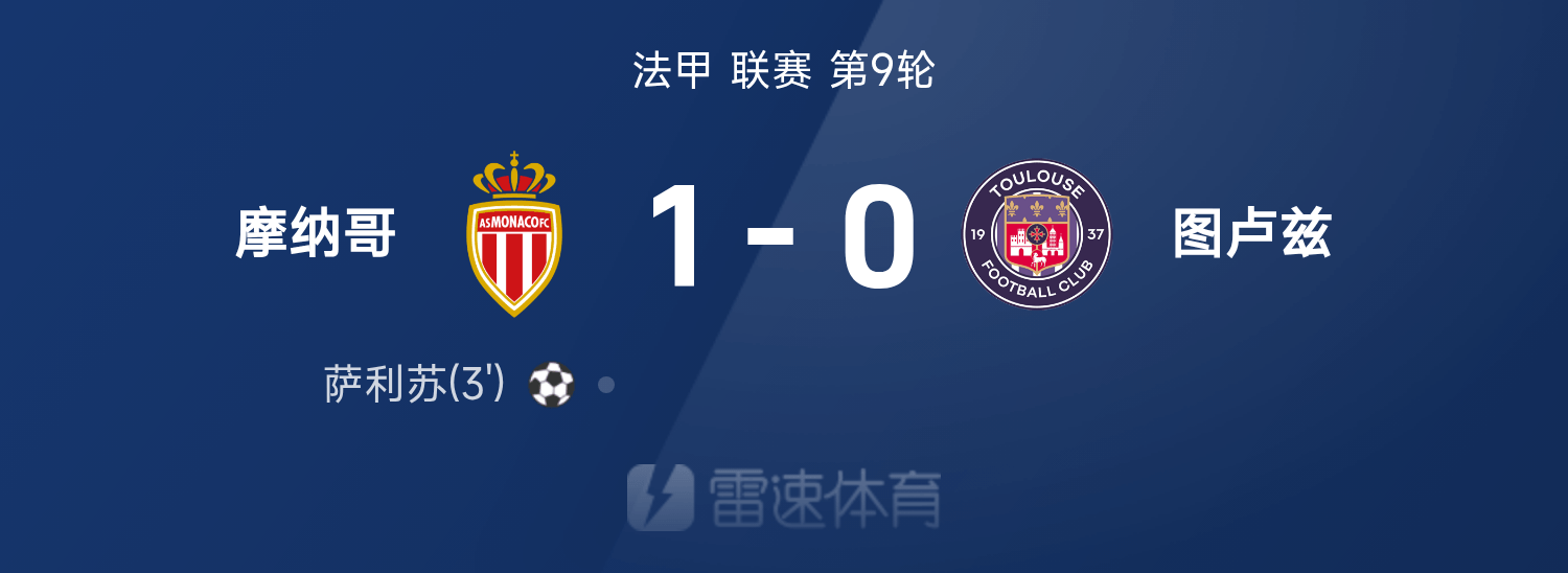 法甲戰報:薩利蘇破門制勝,摩納哥1-0擊敗圖盧茲