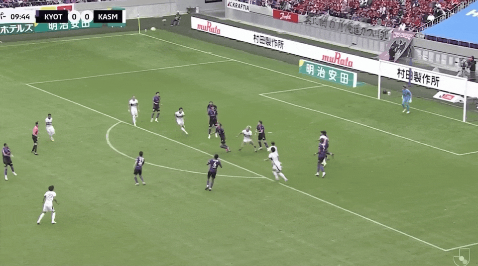 9’火味濃藥味!鹿島定位球攻擊機會,雙方球員在弧頂位置推擠