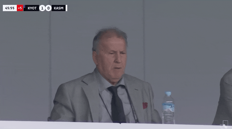 29’半小時3黃!京都教練曹貴裁激烈抱怨,被主裁判判警告