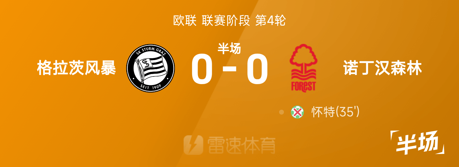 歐聯半場:懷特失點,馬龍進球被吹,格拉茨風暴0-0諾丁漢森林