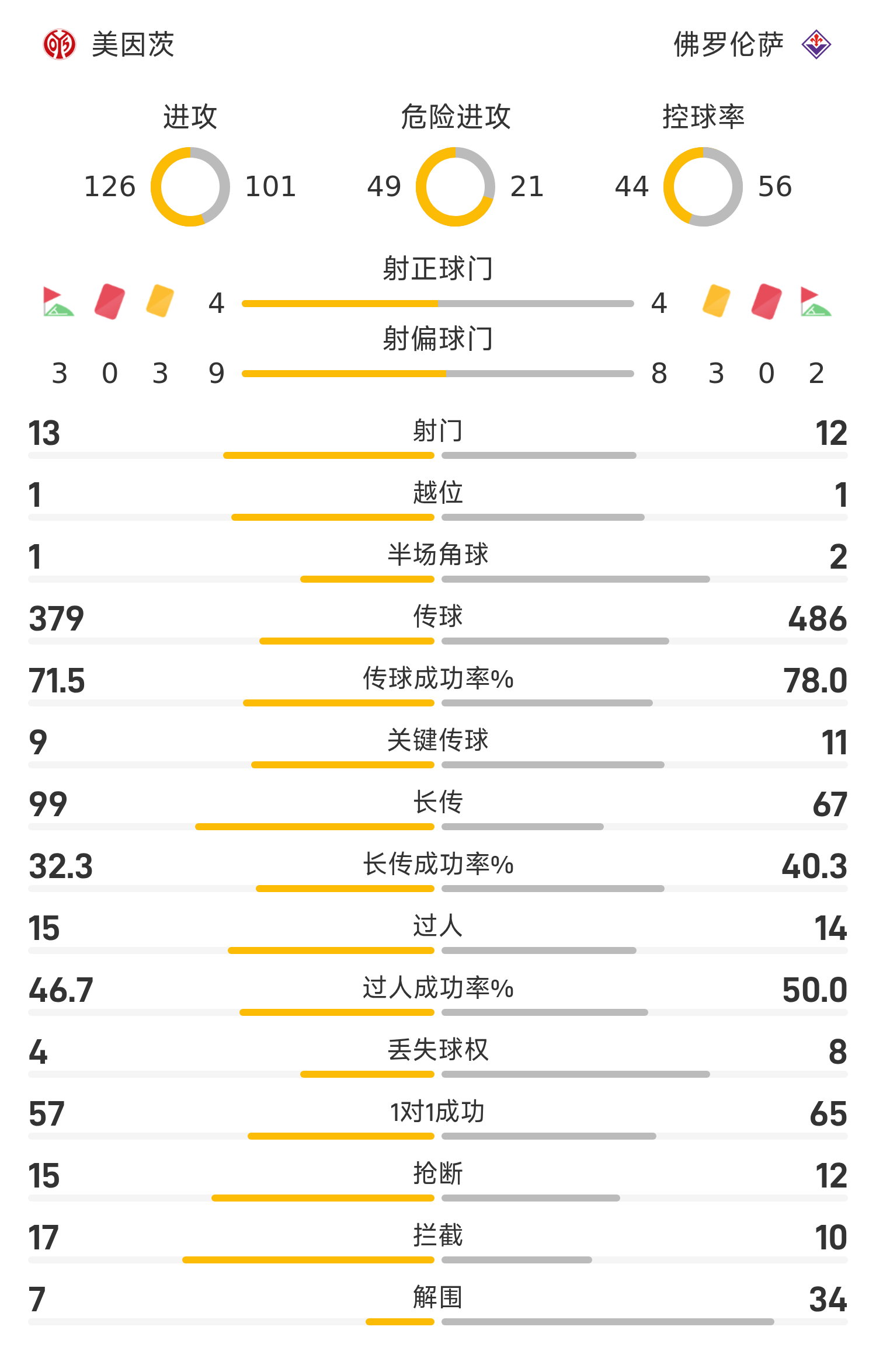 美因茨首發陣容:27-澤特納、21-達科斯塔、31-科爾、48-波圖爾斯基、2-姆韋恩(46’30-威德默)、10-阿米里(81’14-博文)、15-馬隆尼(596-阿米)、8-內貝爾(65’17-霍勒巴赫)、11-西卜(60’7-李在成)、24-川崎颯太、44-維皮爾