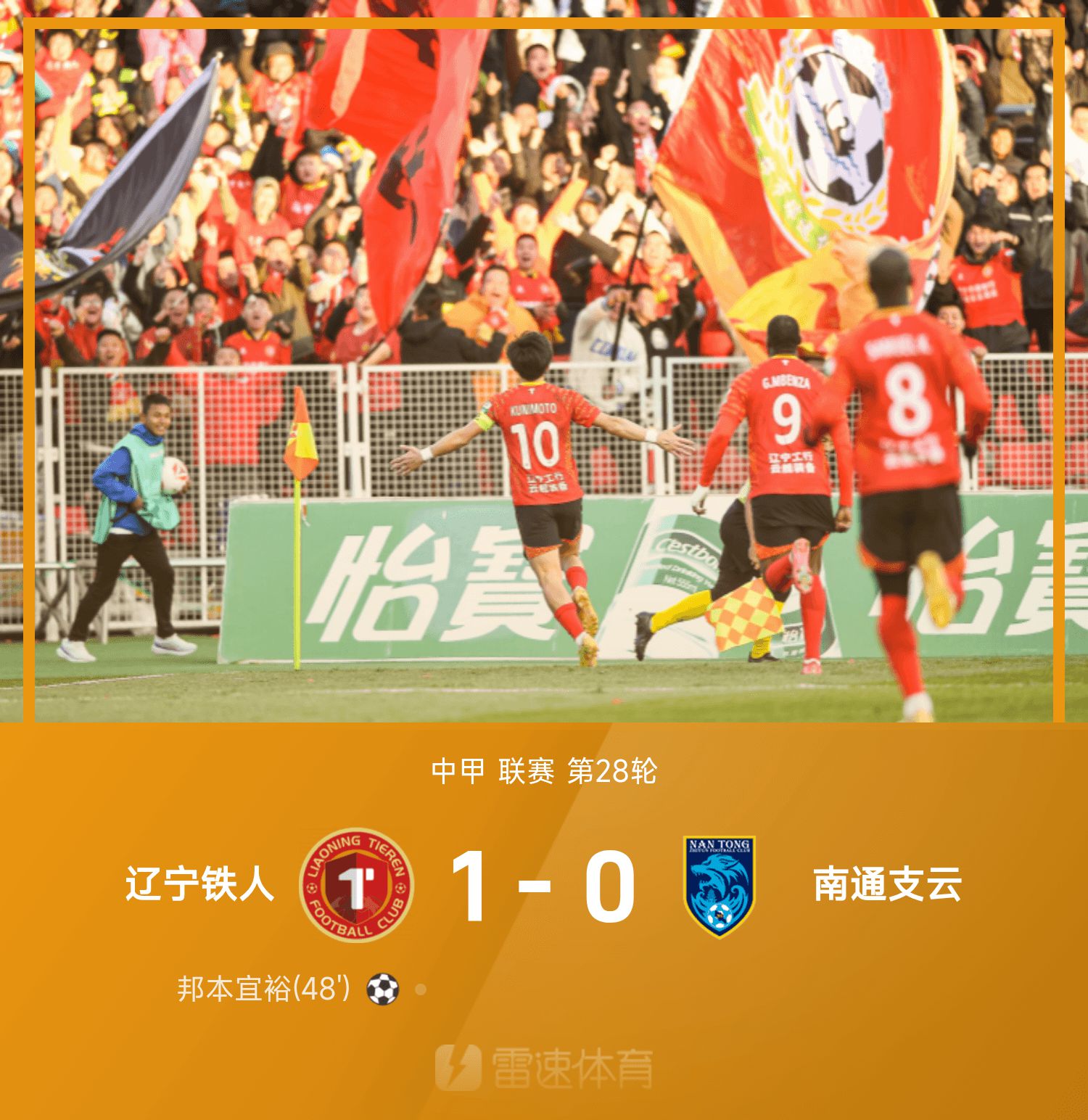中甲戰報:邦本宜裕破門,遼寧1-0南通鎖定冠軍勝利沖超