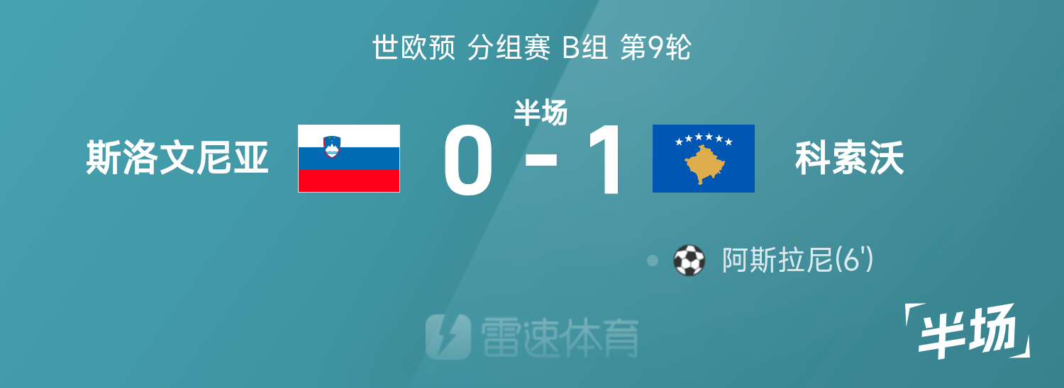 世歐預半場:阿斯拉尼戲耍破門,科索沃1-0斯洛維尼亞