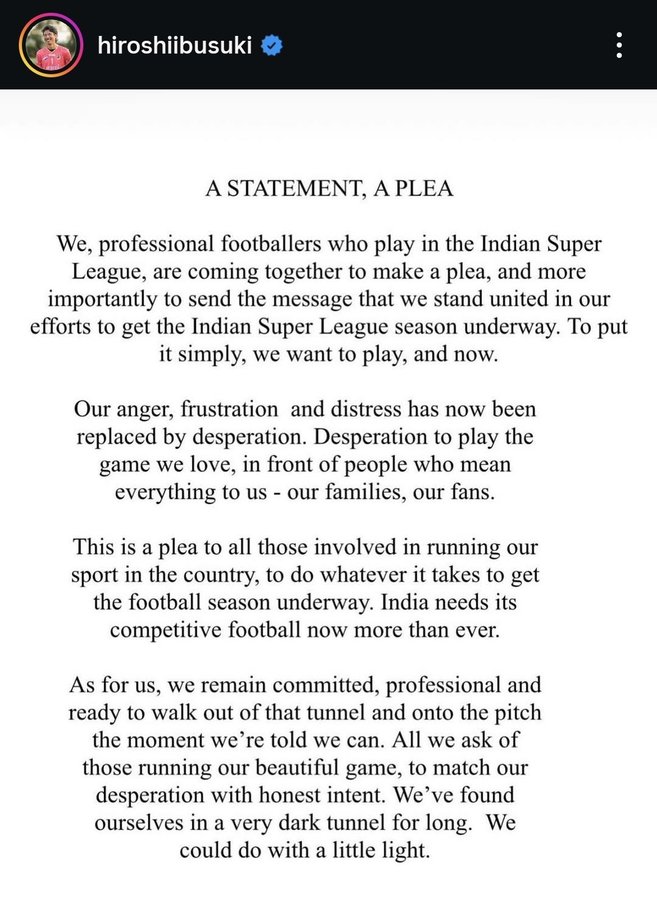 西部聯舊將,目前效力於東孟加拉的日本前鋒指宿洋史發文怒噴聯賽事方:「我們是一群徵戰印度超級聯賽事的職業足球員,今天我們聯合發出這份聲明,更是發出呼籲:我們盼望聯賽事盡快重啟。摯愛的綠茵場上。業精力,只要一聲令下,就會立刻衝出球員通道踏上比賽場。