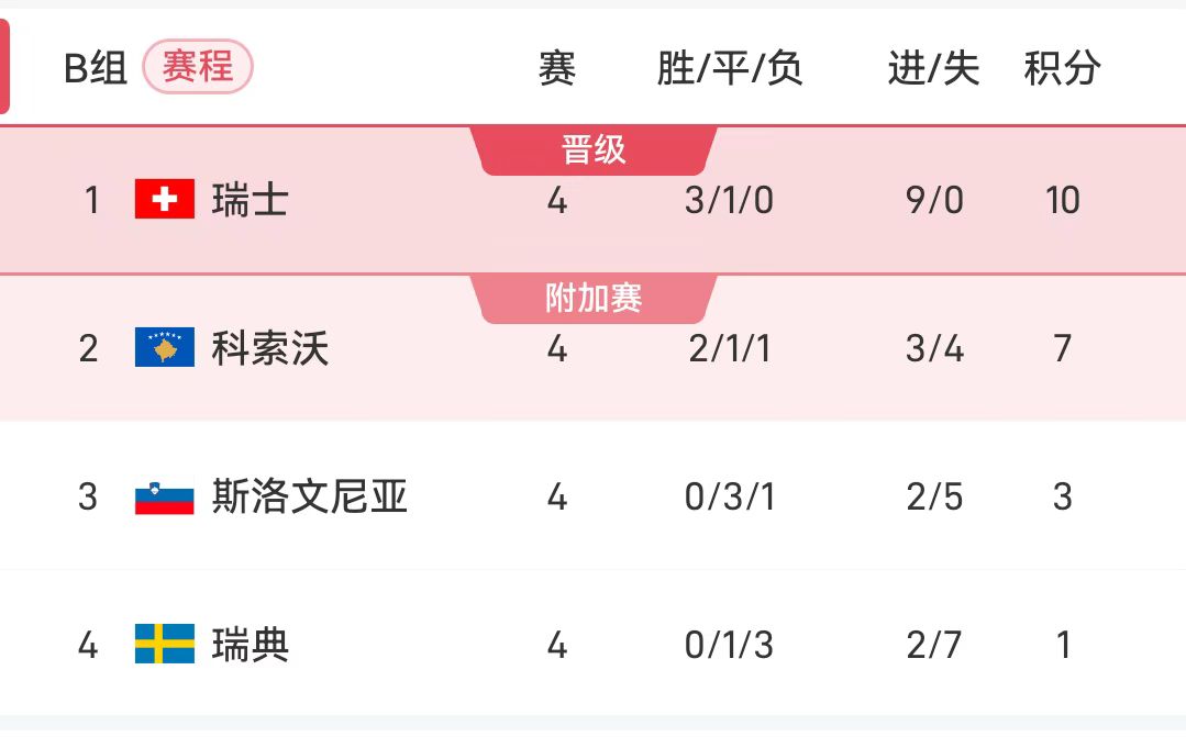 B組的領頭羊瑞士將與瑞典迎來一頭一尾的“雙瑞之戰”,若本場取勝且科索沃在另一場比賽中獲得三分球資格賽將未能獲得瑞士盃賽將獲得三分球資格賽將獲得另一場比賽資格賽獲得前三分盃比賽資格。排名墊底的瑞典也期待一雪前恥,獲得首勝。 H組的奧地利領先位兩分球,本輪若能取得理想結果,也有可能提前出線。