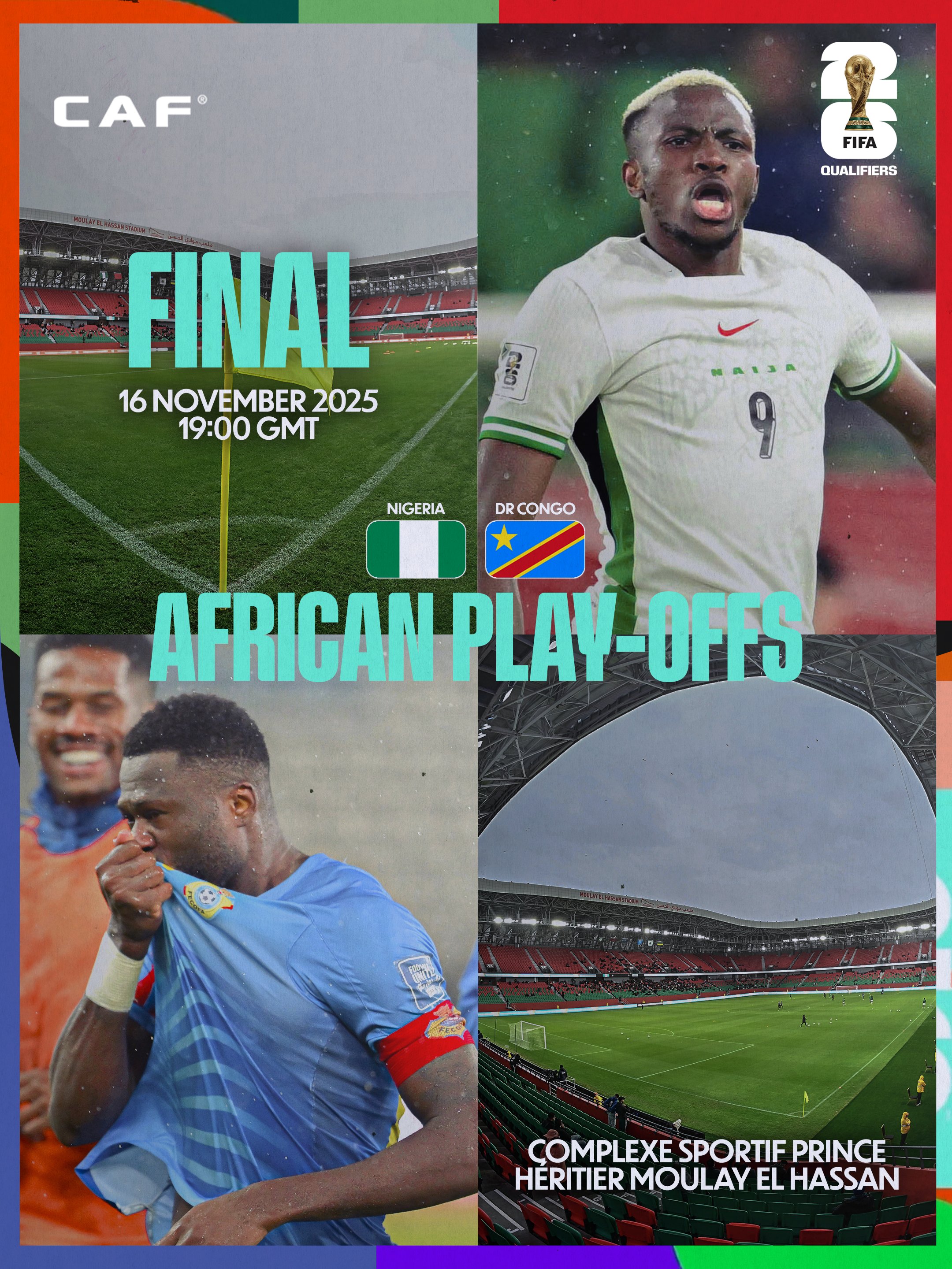 除了歐洲球隊之間的競賽,總時間將在北京加賽的總時間打明總決賽為單回合製,持續在摩洛哥的中立場地內進行,尼日利亞與民主剛果之間的勝者將晉級洲際附加賽,與來自其他大洲的對手持續競爭世盃賽正賽資格。