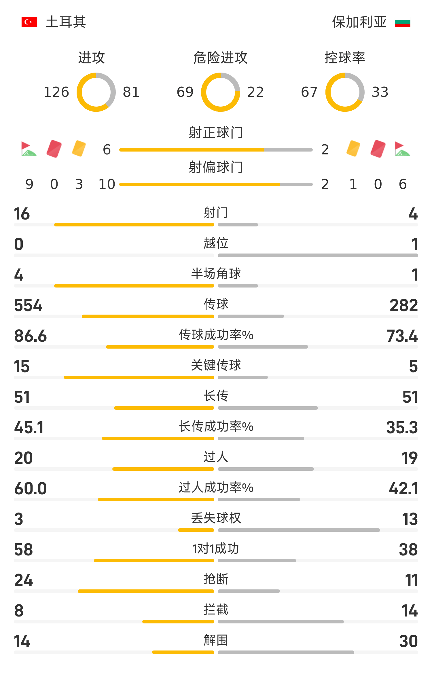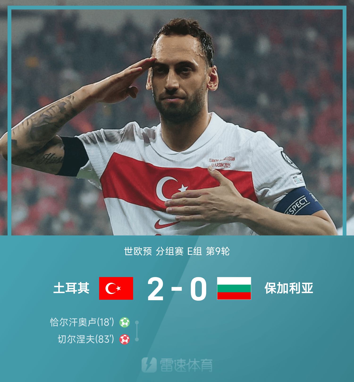 6686體育11月16日訊 26季世歐預分組賽E組第9輪,土耳其2-0擊敗保加利亞。上半場競賽,恰爾汗奧盧點射破門,下半場切爾涅夫自擺烏龍,協助土耳其力克對手。