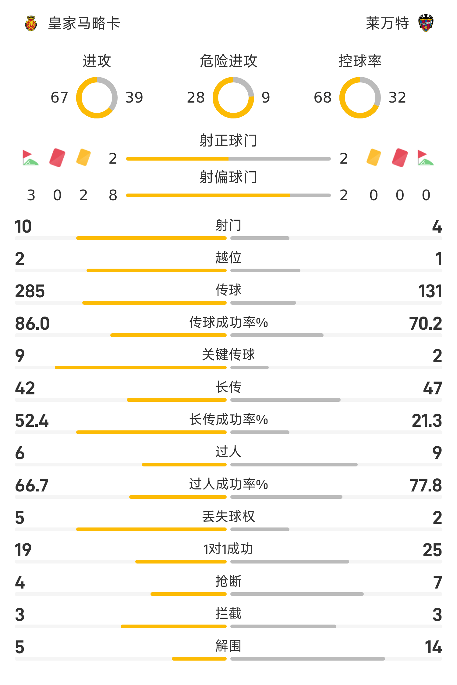 皇家馬略卡先發陣容:1-羅曼、24-瓦爾簡特、22-莫西卡、23-馬費奧、21-拉伊洛、10-達德爾、8-莫拉內斯、12-科斯塔、18 -約瑟夫、17-維吉利、7-穆里奇