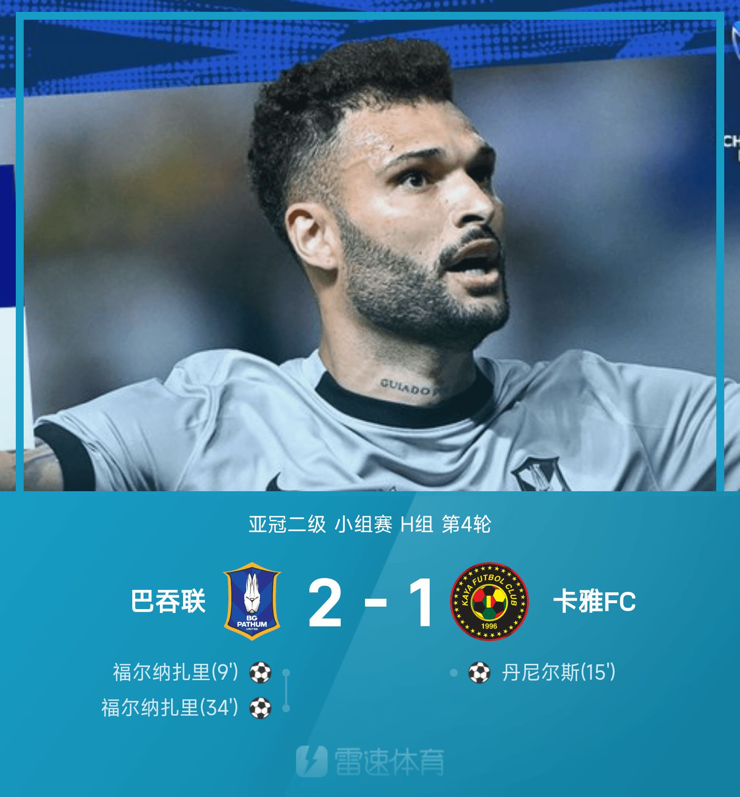 6686體育11月06日訊 25/26賽季亞冠二級分組賽H組第4輪,巴吞聯2-1戰勝卡雅FC。上半場競賽,福爾納扎里開場不久頭槌破門,隨後丹尼爾斯反擊建功扳平賽果分,第34分鐘,福爾納扎里再度頭槌破門,協助巴吞聯2-1力克對手。